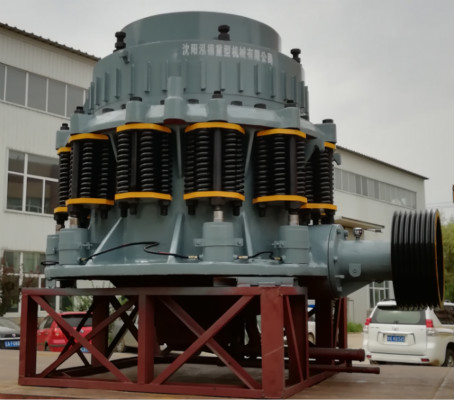 從外觀來講,圓錐破外邊有一圈彈簧,所以又叫彈簧圓錐破,彈簧圓錐破是經過皮帶機的旋轉帶動傳動軸和圓錐部在軸心線下使偏心軸做周期性旋擺運動。在物料從料口進入破碎腔后因遭到偏心軸和軋臼壁的互相沖擊揉捏、研磨、搓弄然后發作破碎的效果。