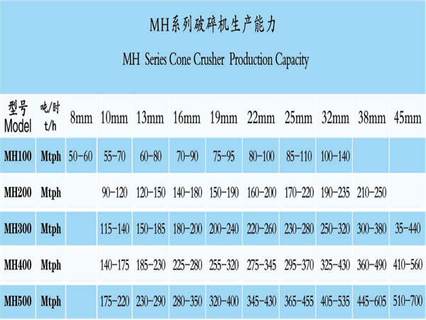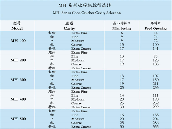 用范圍,同時保證了產品的可靠質量。從石灰巖到鐵燧石,從金屬礦石破碎到機制砂,MH系列圓錐破碎機可提供超細碎,細碎,中碎等不同作業上的高破碎比。